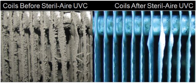 The surface cleaning effects of UVC helps restore older HVAC system to efficient operation and maintain new systems at factory design efficiency, while protecting system components against the acids that are emitted from the biofilm and the corrosive effects of chemical coil cleaning.